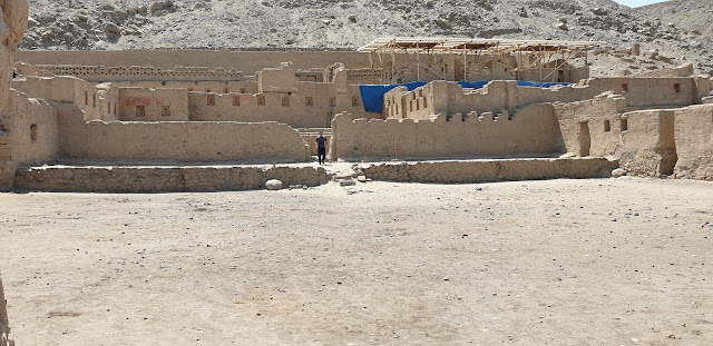 The Chincha and Inca ruin from 1450AD has a few unique aspects that set it apart from other similar sites. Notably, the orientation is towards a mountain to the north, rather than to the sun as was typical. You can see it beyond the ruins on the photo (right) above. The mountain, revered as a deity, is visible in the photos due to its slightly darker colour.
